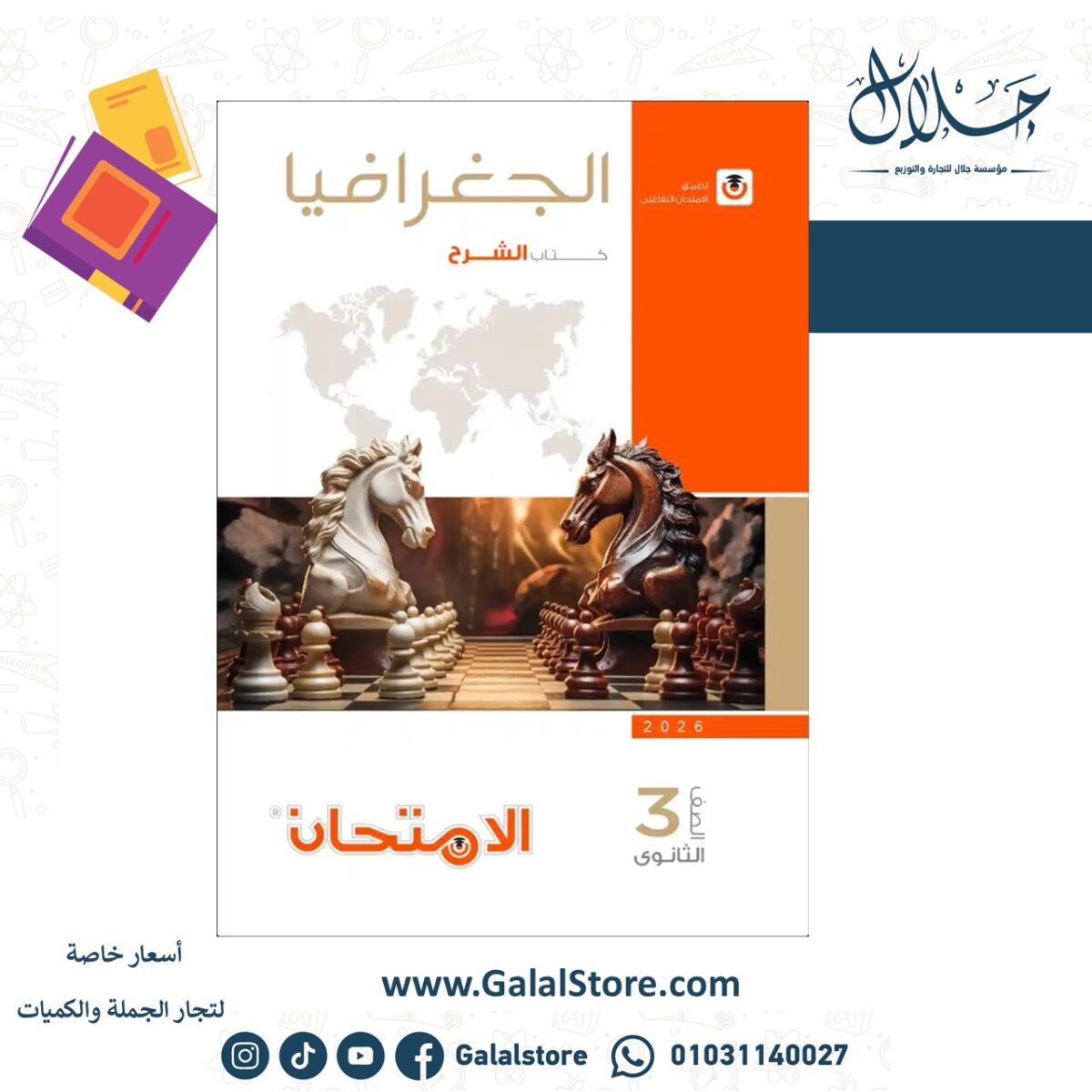 كتاب الامتحان جغرافيا شرح الصف الثالث الثانوي لعام 2025-2026 هو مرجع شامل ومتكامل يغطي المنهج الجديد بكل تفاصيله ويوفر شرحًا وافيًا لجميع وحدات الدراسة في مادة الجغرافيا السياسية.  حيث يقدم شرحًا مبسطًا لعدد من المحاور الكبرى تشمل الدولة في الجغرافيا السياسية، المشكلات السياسية، التكتلات الاقتصادية، الخلافات العسكرية، والعلاقات الدولية والنظام العالمي الجديد. يتميز بأسلوبه الواضح والمنظم الذي يسهل على الطالب فهم المادة المعقدة وتحليل القضايا الجغرافية المعاصرة.